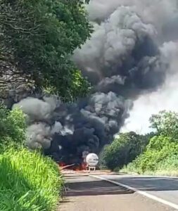 Acidente entre duas carretas matou um motorista carbonizado e deixou outro ferido na tarde deste domingo (19), na BR-158 entre Cassilândia e Paranaíba. Depois da batida, os veículos pegaram fogo e densa nuvem de fumaça preta se formou e pôde ser vista a quilômetros de distância.