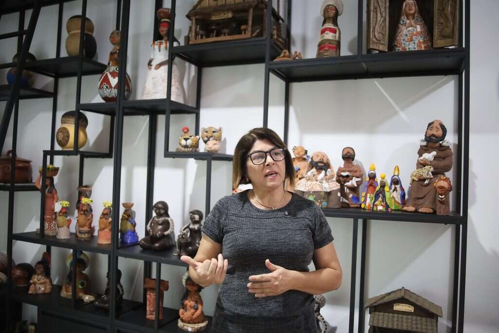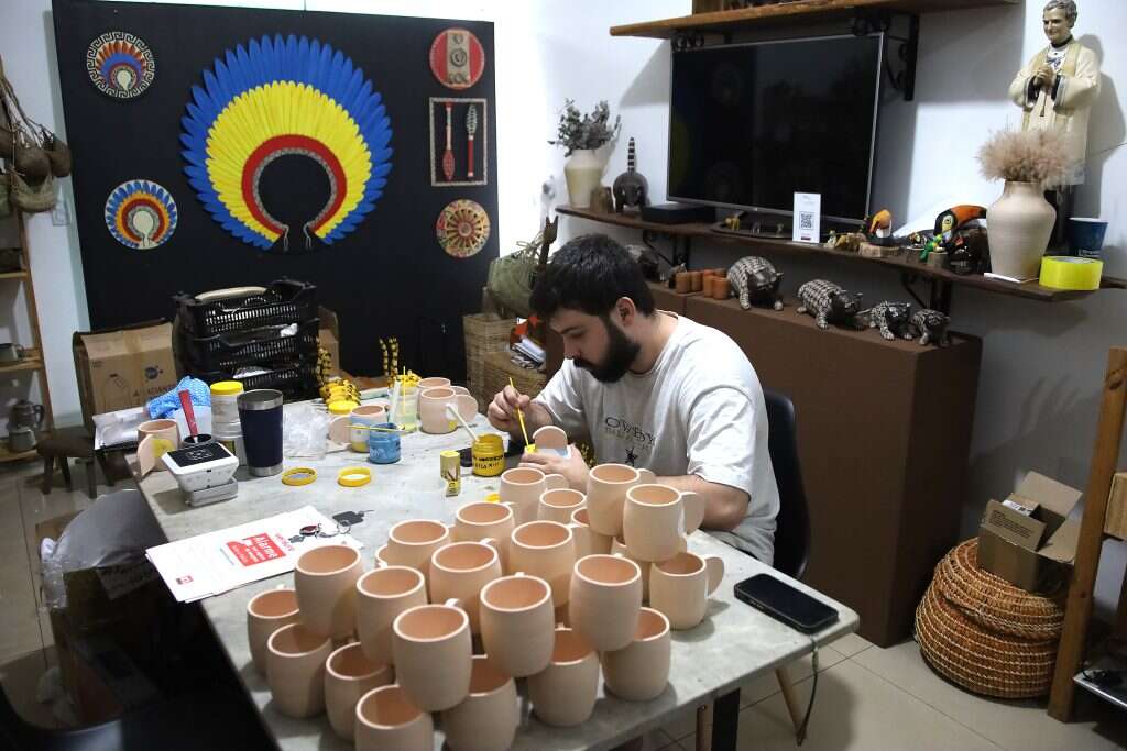 “Atualmente, trabalhamos com mais de 30 artesãos do Estado. Aqui, por exemplo, temos peças de Indiana Marques, que atua em Campo Grande, e de artesãos indígenas de Miranda. Também temos trabalhos de Elizabeth Marques, irmã de Indiana. Essa família já está na quarta geração de artesãos”, conta.