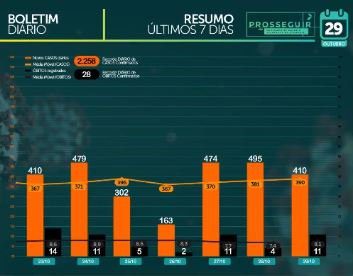 Foram 410 confirmações e 11 mortes nas últimas 24 horas
