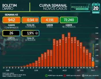 Com bases nos números, a média móvel no Estado foi calculada em 409,6 casos por dia, nos últimos 7 dias. O boletim traz que nas últimas 24 horas foram registrados 15 óbitos, elevando o total de vítimas fatais em MS para 1.512 e a média móvel em 9 óbitos por dia, nos últimos 7 dias, além de taxa de letalidade de 1,9%.