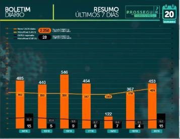 Foram 453 confirmações e 15 mortes nas últimas 24 horas