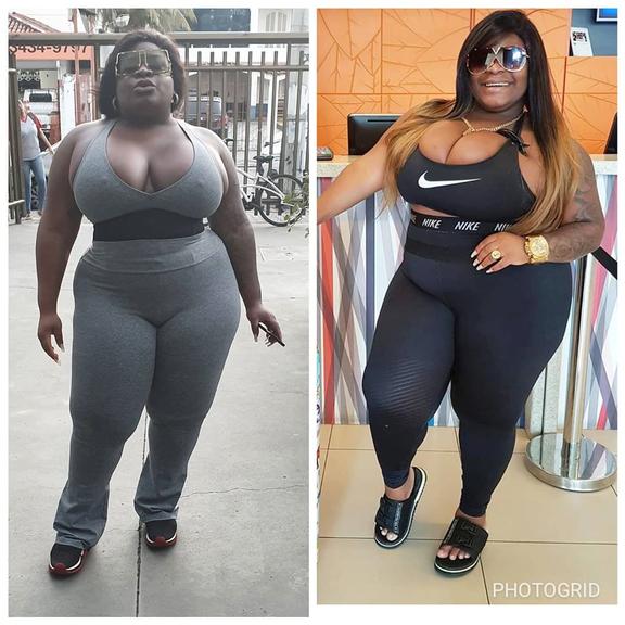 Em seu Instagram, a cantora publicou uma foto exibindo seu antes e depois e surpreendeu demais com o resultado. Ela surgiu muito mais magra e ostentou uma cintura fininha em um look justinho de top e legging.
