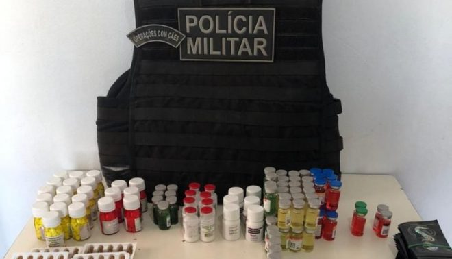 Ao ser indagada sobre o motivo do nervosismo, a mulher revelou que portava junto ao seu corpo, nas roupas íntimas, 28 frascos de comprimidos anabolizantes e, ainda, outras 84 ampolas também de anabolizantes. Ela foi conduzida para a delegacia de Polícia Civil.