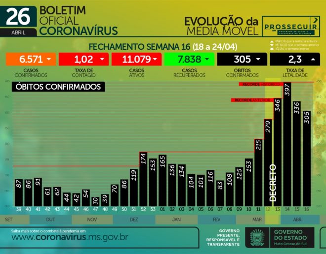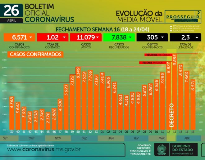 Na live do Governo do Estado da última segunda-feira (26), o secretário de Saúde Geraldo Resende apontou dados que demonstram que ações de imunização em conjunto com decretos publicados pelo Governo de MS repercutiram em bons resultados, diminuindo a curva de contágio da Covid-19 em Mato Grosso do Sul. Mesmo estando longe do ideal, ações deste tipo são fundamentais para conter a pandemia. ”