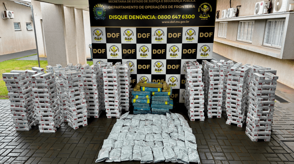 DOF intercepta mais de 200 quilos de drogas junto com carga de cigarros e agrotóxicos contrabandeados
