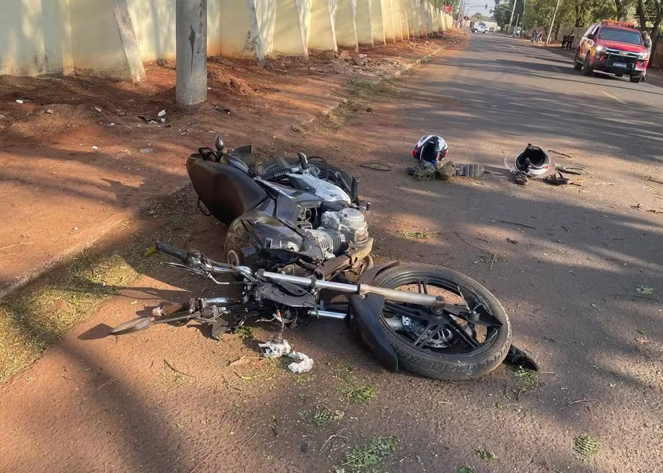 Quatro jovens em uma única moto batem em poste e ficam em estado grave em Campo Grande
