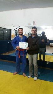 Os faixa marrom da Liga Confederada de Judô do Mato Grosso do Sul (LCJMS), que estão fazendo os cursos preparatórios para exame de faixa preta, receberam na noite desta quinta feira (14), das mãos do Secretário de Esportes Ednelson Barbosa e do advogado da LCJMS Eduardo Castrioto os certificados de conclusão do curso de Gokio.