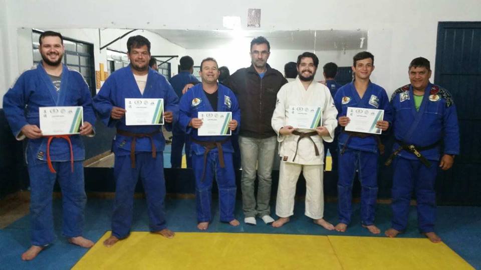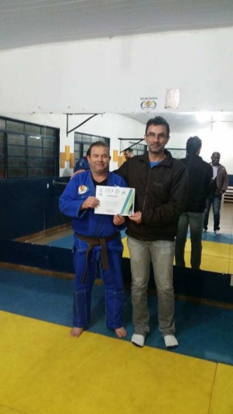 Os faixa marrom da Liga Confederada de Judô do Mato Grosso do Sul (LCJMS), que estão fazendo os cursos preparatórios para exame de faixa preta, receberam na noite desta quinta feira (14), das mãos do Secretário de Esportes Ednelson Barbosa e do advogado da LCJMS Eduardo Castrioto os certificados de conclusão do curso de Gokio.
