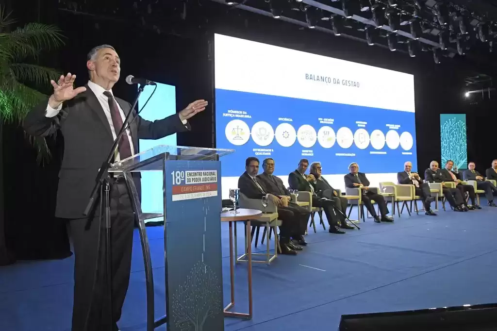 O governador Eduardo Riedel participou da abertura do evento, juntamente com o presidente do CNJ (Conselho Nacional de Justiça) e do STF (Supremo Tribunal Federal), ministro Luís Roberto Barroso e o presidente do TJMS (Tribunal de Justiça de Mato Grosso do Sul), em exercício, desembargador Dorival Renato Pavan, e ainda presidentes dos Tribunais de Justiças dos estados e do Distrito Federal.