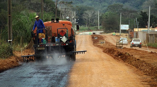 Na semana passada, a empreiteira deu início à pavimentação do trecho, começando pela Avenida Mateus Muller, na área urbana da cidade. A pista dupla terá largura de 10 metros, enquanto a pista simples, oito metros. O total de pavimentação em CBUQ é estimado em 14.150 metros quadrados. A presença do Governo do Estado já muda o cenário urbanístico local, com dezenas de imóveis em construção e valorização imobiliária.