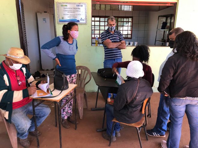 Prefeitura Municipal de Maracaju continua dando assistência ao pequeno produtor através do Departamento Agropecuário Municipal. Nesta quinta feira (28), O Diretor do Despertamento Eloar Castelaci esteve reunido com os produtores da Comunidade Quilombola São Miguel, para pegar as assinaturas de todos os produtores que participaram da licitação da merenda escolar. Este ano em virtude da pandemia, o pregão foi online; para facilitar as famílias e por haver a necessidade da assinatura do documento o departamento foi ao Quilombo coletar as assinaturas