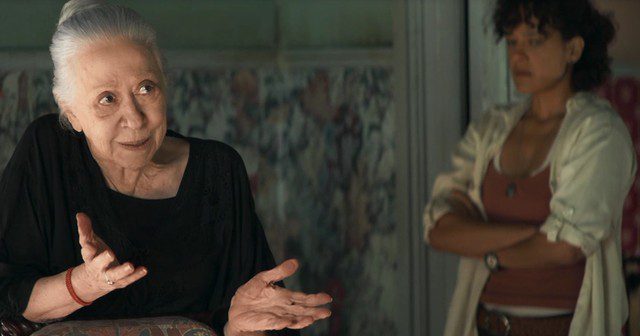 “Com tanto homem no mundo, tinha que achar um Matheus?”, reclama Zenaide (Maeve Jinkings), irmã de Maria.