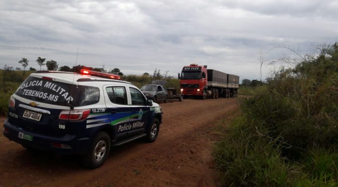 Nesta quinta –feira por volta das 15h a equipe Policial Militar de Terenos/5ª CIPM recebeu  denuncias de motoristas que estavam transitando pela estrada que liga Terenos ao Município de Dois Irmãos do Buriti, através do telefone de emergência(190), sobre umas carretas paradas a margem da via de maneira incomum.