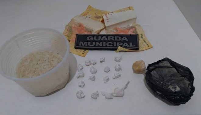 Duas pessoas de 18 e 38 anos foram presas na madrugada desta sexta-feira em Dourados com 18 pedra de crack. A droga estava guardada em um pote de arroz e foi localizada pela GMD ( Guarda Municipal de Dourados), no Bairro Estrela Pytã.
