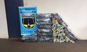 Polícia Rodoviária Estadual (PRE) apreendeu 226 quilos de maconha que estavam escondidos em meio a um matagal, na BR-164, em Ponta Porã.