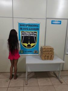 Por volta das 17h30min, em abordagem ao veiculo ônibus da Viação Cruzeiro do Sul de prefixo 28285 e placas HSI-1592, que fazia o itinerário Ponta Porã-MS a Campo Grande-MS, em vistoria as bagagens, foi identificada duas malas suspeitas, uma de cor preta e uma de cor vermelha, pertencentes ao menor infrator W. D. M., RG 1440002-SSP/RO, CPF 702.238.002-36, o mesmo declarou ser o dono das malas, que ao ser feita revista nas mesmas.