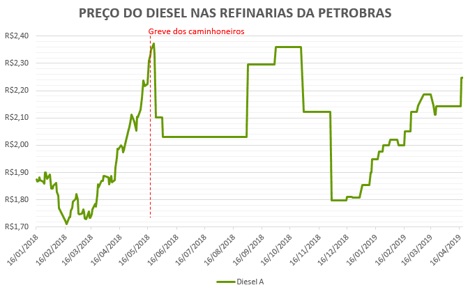 Antes da greve do ano passado, o preço do combustível nas refinarias girava em torno de R$ 2,30.