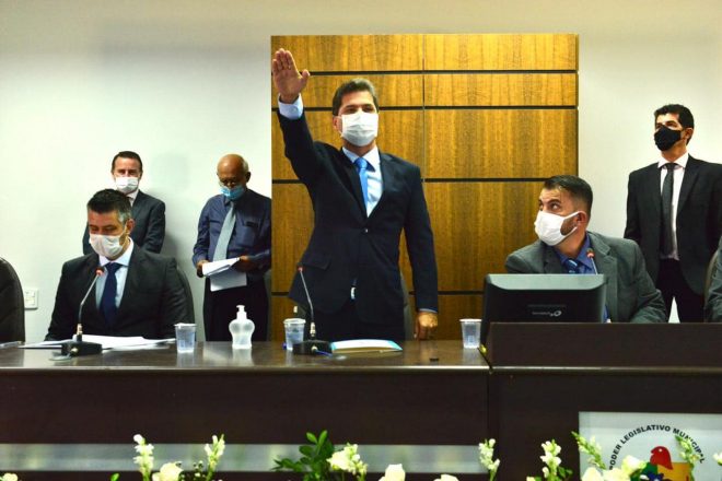 O evento foi transmitido pelas redes sociais do prefeito eleito e na página da Câmara Municipal de Vereadores