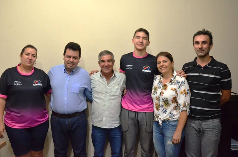 O prefeito Maurílio Ferreira Azambuja, Primeira Dama Leila Gonçalves Azambuja, Secretário de Esportes Ednelson Barbosa e Secretário de Fazenda e Administração lenilso Carvalho receberam o Atleta Luiz Henrique, da modalidade Handebol, Luiz foi selecionado para compor a seleção brasileira, que estará treinando para fazer o composição dos selecionados para 2019.