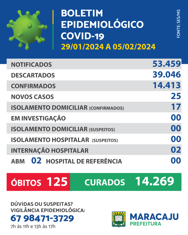 A Prefeitura de Maracaju por meio da Secretaria Municipal de Saúde vem a público informar os dados referente a COVID-19 no município.
