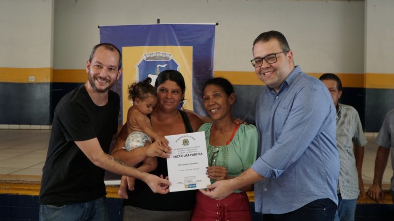 “Nós ouvimos muitos relatos de famílias onde entes queridos faleceram e não conseguiram ver esse sonho concretizado. Então essa entrega de hoje é muito forte, porque o que mais vale é a família, os momentos que passamos com as pessoas que amamos, e lugar da família é dentro de casa, eu fico muito feliz em entregar esse documento, pronto, reconhecido no cartório, para que essas mais de 70 famílias possam dormir na certeza de estar dentro de seus imóveis por direito”, afirma.