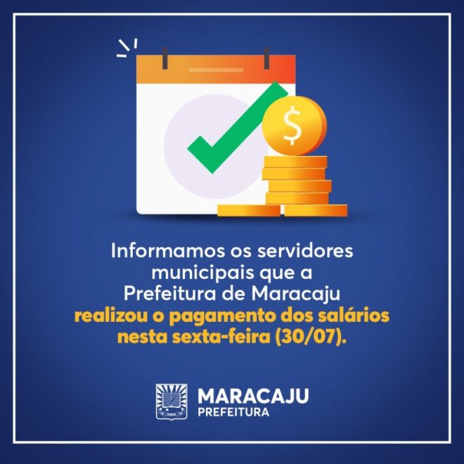 A Prefeitura de Maracaju, através da Secretaria de Administração, segue mantendo o compromisso com seus servidores, informa que todos os trabalhadores receberam o salário referente ao mês de julho, nesta sexta-feira (30).