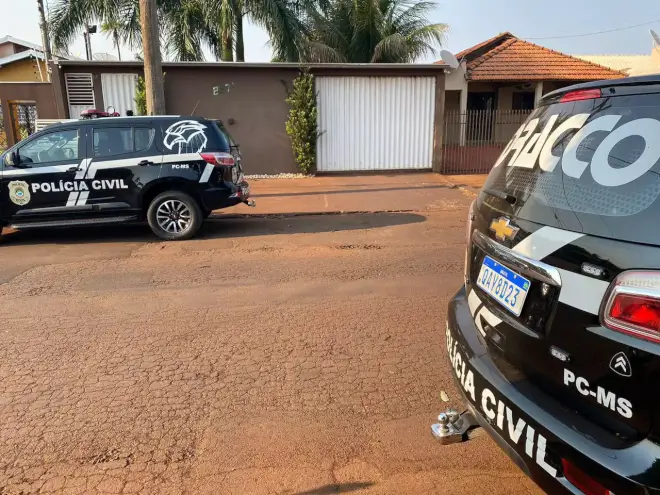 Equipes da Polícia Civil em ação na primeira fase da operação, realizada em Maracaju