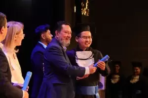 Secretário-executivo Esaú Aguiar entrega diploma para formanda