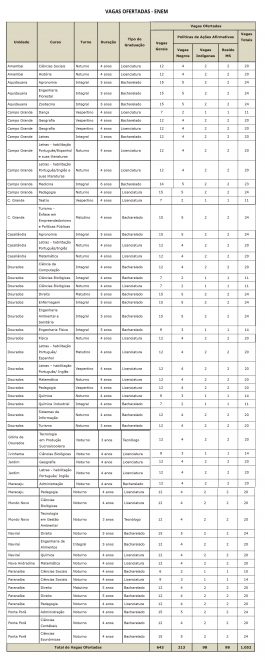 A Universidade Estadual de Mato Grosso do Sul (UEMS) abriu as inscrições para o Processo Seletivo Permanente UEMS 2021, que ofertam 1052 vagas em 54 cursos de graduação, em 14 unidades da UEMS. Para se registrar no PSP-UEMS-2021 o candidato poderá utilizar a nota do Exame Nacional de Ensino Médio (ENEM) dos anos de 2015, 2016, 2017, 2018 e/ou 2019.