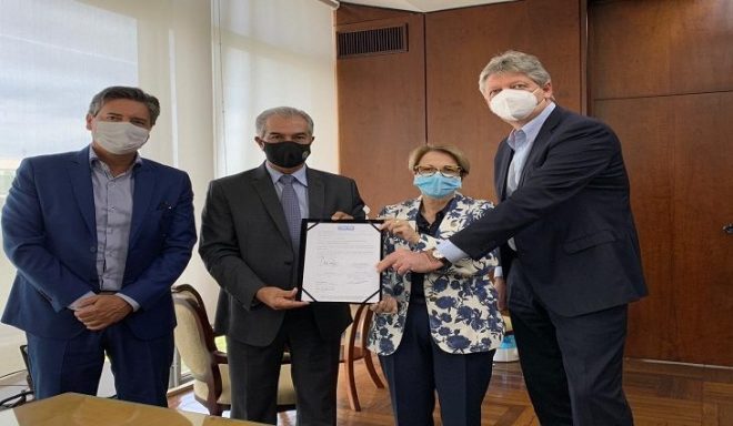 Anunciado pela ministra da Agricultura, Tereza Cristina, em Terenos, durante a entrega dos 1.128 Títulos de Domínio (TD) a beneficiários do Programa Nacional de Reforma Agrária (PNRA), na presença do presidente da República Jair Bolsonaro, na última sexta-feira (14), a assinatura do convênio do ‘Programa de Consolidação de Assentamentos – Produzir Brasil’ foi assinado nesta segunda-feira (18), em Brasília, pelo presidente da Anater, Ademar Silva Júnior, o governador Reinaldo Azambuja e o s titular da Secretaria de Meio Ambiente, Desenvolvimento Econômico, Produção e Agricultura Familiar (Semagro), Jaime Verruck.