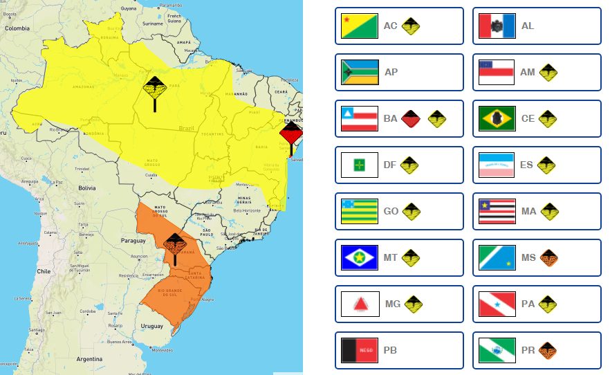A Coordenadoria Estadual de Defesa Civil de Mato Grosso do Sul conta com um serviço de SMS que dispara alertas diversos para o cidadão cadastrado.