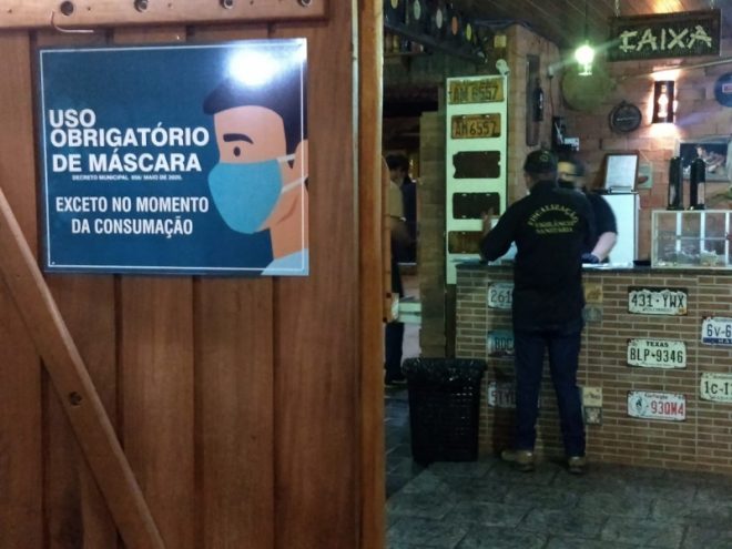 A Vigilância Sanitária passou de sexta-feira a domingo visitando pontos do comércio noturno aplicando check list, dando orientações e fiscalizando bares, lanchonetes e templos religiosos.