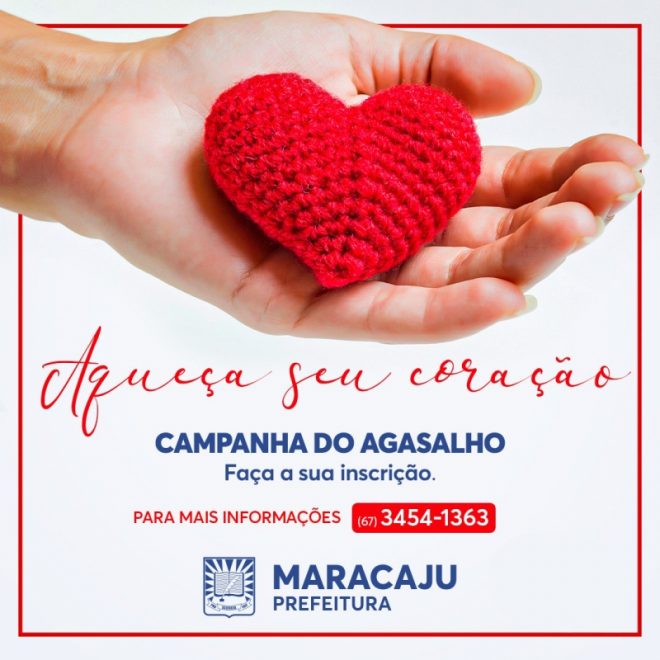 Os dias mais frios do ano se aproximam e é hora de aquecer as pessoas que mais precisam neste momento. Para proteger as famílias mais carentes do município a Prefeitura de Maracaju segue com as inscrições abertas para quem deseja receber doações da Campanha do Agasalho de 2021. As inscrições seguem até dia 14/05 e devem ser feitas por telefone nos locais indicados.