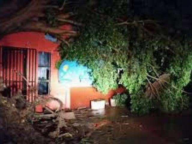 Uma família ficou isolada em casa até a chegada dos militares, depois que uma árvore caiu no muro da casa e atingiu o portão.