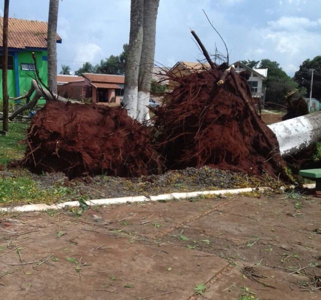 Um vendaval no final da manhã dessa quinta-feira (27) destelhou mais de 100 casas e derrubou árvores na cidade de Bandeirantes (MS), a 74 km de Campo Grande. Segundo a prefeitura, três escolas foram danificadas e 30% da cidade está sem energia elétrica.