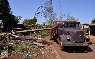 Uma árvore de grande porte da espécie Sibipiruna caiu em cima de um caminhão na Rua Zeferino Correa da Silva – Bairro Moreninha.