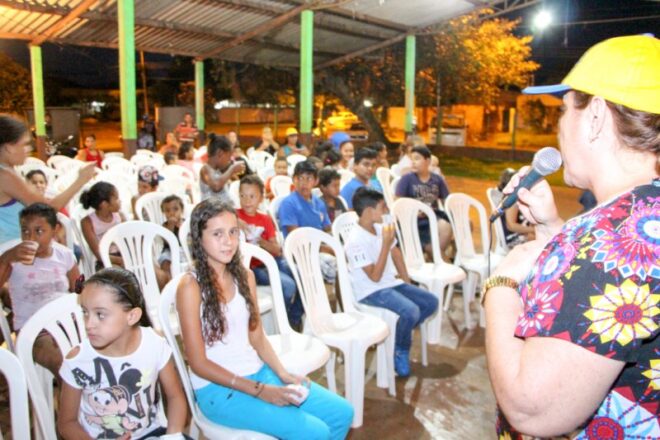 “Hoje é um dia muito especial e feliz para mim, iniciamos o Projeto Gabinete Cultural, onde estaremos proporcionando momentos de lazer e cultura para as nossas crianças de Maracaju. Começamos aqui na Vila Adrien e vamos levar a todos os bairros e comunidade da cidade. Teremos cinema com pipoca, teatro, leitura, teatro com fantoches, música e muitas outras atividades relacionadas a cultura”, disse a vereadora.