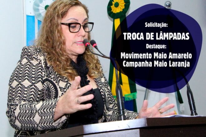 Hoje na sessão da ordinária da Câmara Municipal, a Vereadora Marinice Penajo, solicitou envio de expediente ao Secretário de Obras Thiago Caminha com cópia ao Prefeito Municipal, para a troca das lâmpadas queimadas na Rua Aquidauana no bairro Porto Belo e também na Av. Mário Corrêa.