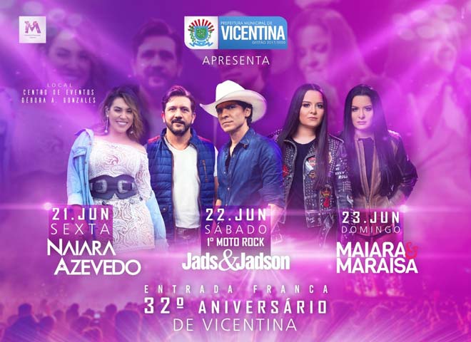 Vicentina faz 32 anos com shows gratuitos, hoje tem Naiara Azevedo