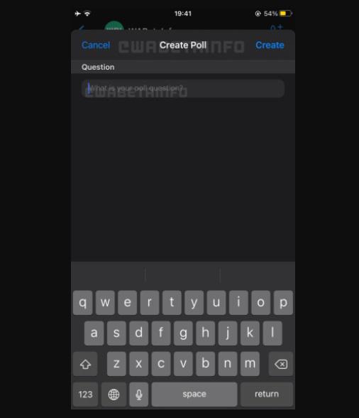 A criação de uma enquete em grupos, selecionando a pergunta desejada.Fonte: WABetaInfo